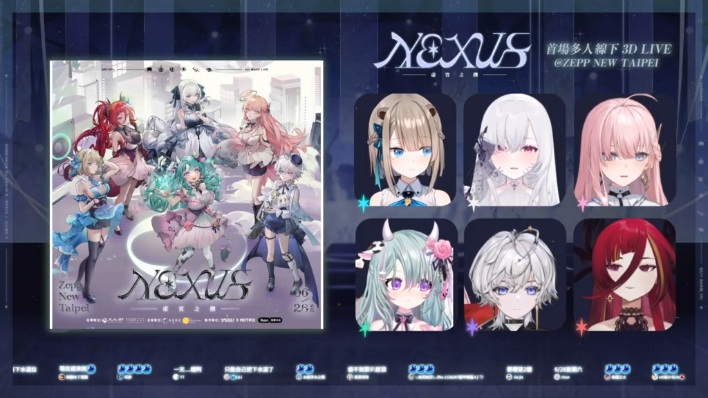 春魚創意今天(3/23)晚上在官方頻道宣布,將在6月28日舉辦首場箱內線下3D LIVE「NEXUS 虛實之間」,出席成員包含露恰露恰、歐妲、厄倫蒂兒、涅默、埃穆亞和熙歌,舉辦地點為LIVE HOUSE演唱會場Zepp New Taipei。